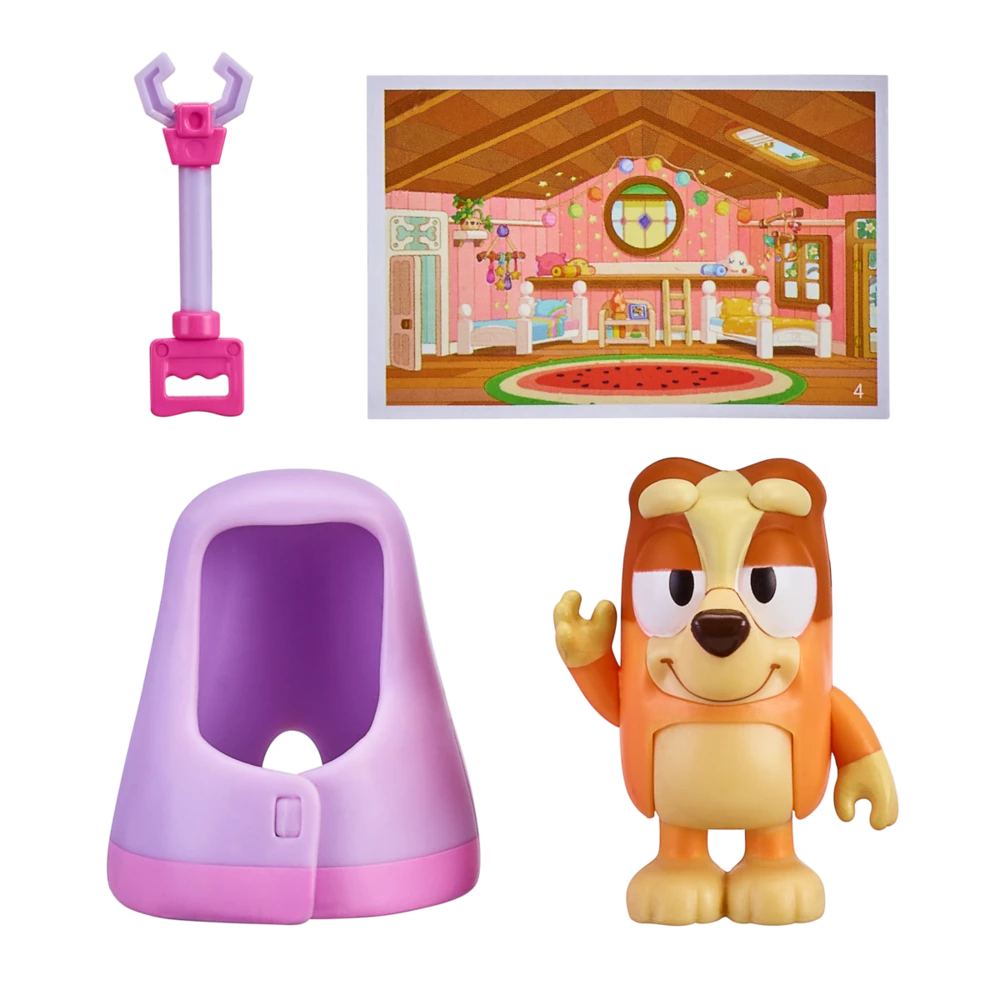 Join Bluey, Bingo and their friends Mackenzie and Chloe as they have fun imagining and creating stories. Each Story Starter Pack is themed around one of Bluey’s episodes and comes with an accessory for your character to play with. Also included in each pack is a cute Mini Postcard showing a scene from the Bluey TV show. There are 6 fun Story Starter Packs to collect. All 6-8cm Figures in these packs have moving arms and body.