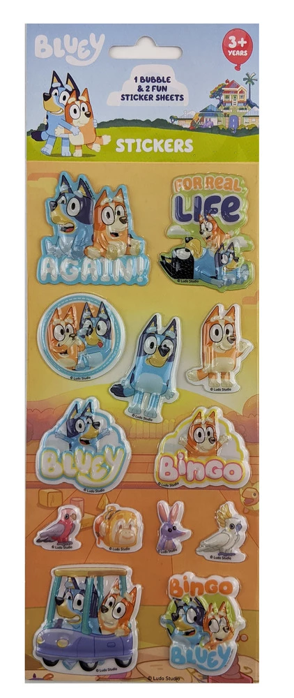 3 pack of stickers. 1 bubble sticker sheet. 2 fun sticker sheets. Ages 3+.